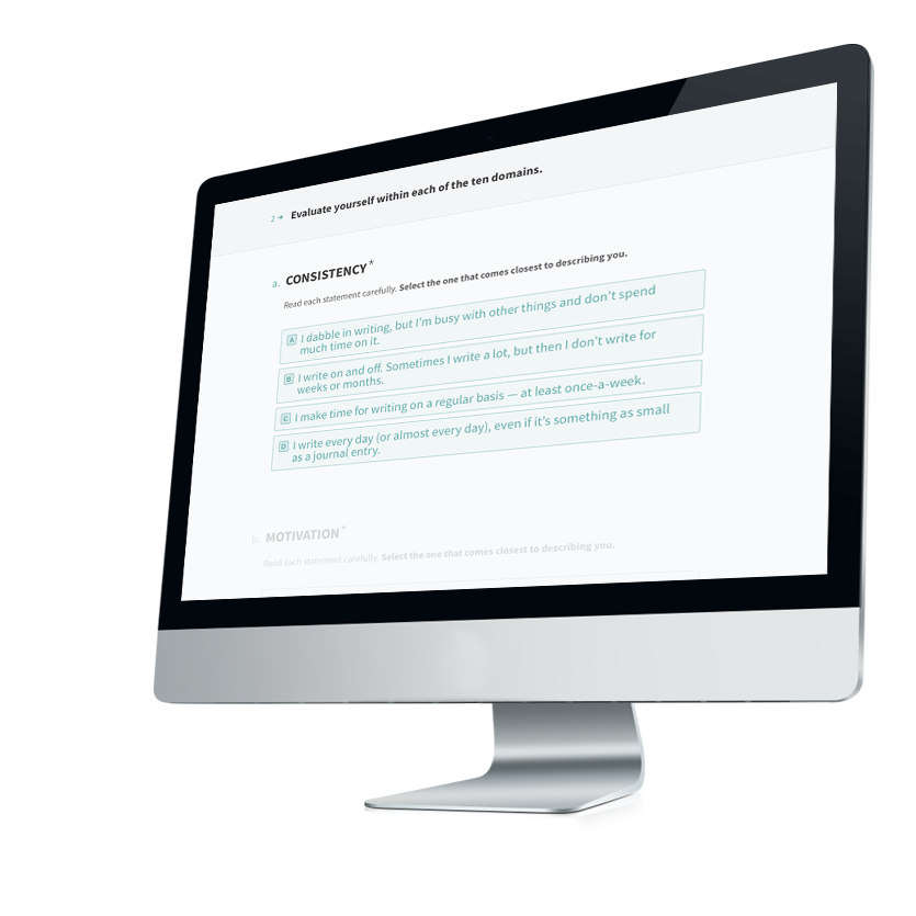 The WriterScore Assessment tracks writers in Ten Key Areas so they can get clarity and confidence on what’s currently holding them back from success.
